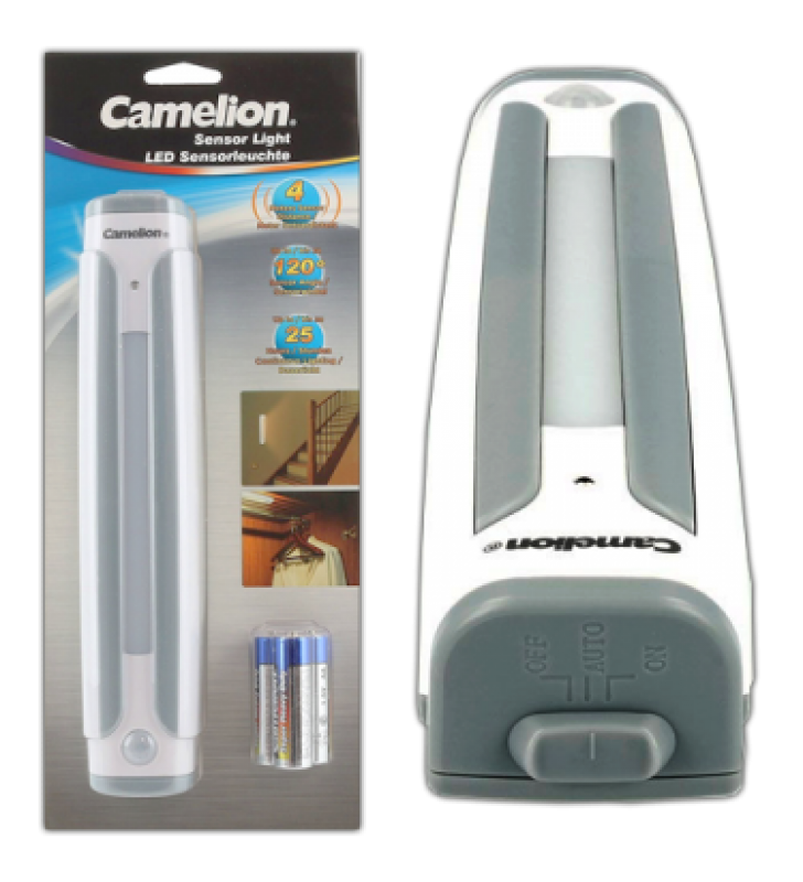 Φωτιστικό με μπαταρίες CAMELION με 6 LED και ανιχνευτή κίνησης. Φωτεινότητα: 25Lm. Αυτονομία 25h. Ανιχνευτής με εμβέλεια έως 4m. Μπαταρίες 3xAA.