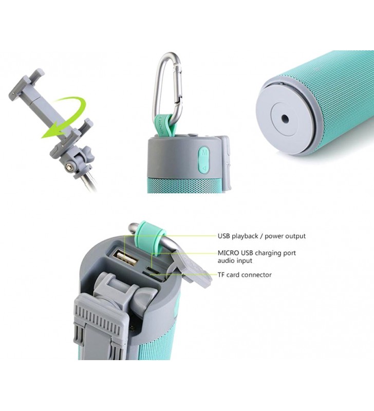 MICROLAB Φορητό ηχείο MD118, power bank, φακός, selfie stick, πράσινο