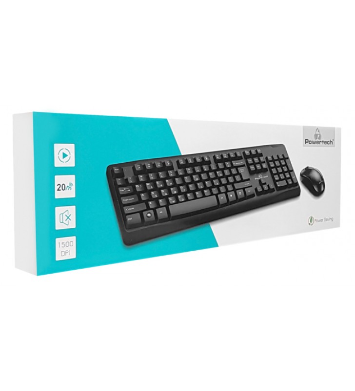 POWERTECH set ποντίκι & πληκτρολόγιο PT-915, ασύρματο, 1500dpi, μαύρο