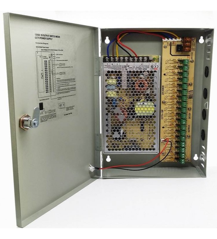 > Τάση εισόδου : 110-220V > Τάση εξόδου :12V> Μέγιστο ρεύμα εξόδου : 16.7A MAX> Κατανομή εξόδου : 18 κανάλια με ξεχωριστή PTC ασφάλεια> Προστασία από υπερφόρτωση-υπέρταση > Ενσωματωμενο τροφοδοτικό MEANWELL.