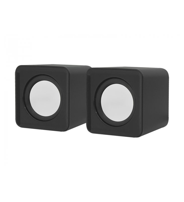 Μικρά, συμπαγή ηχεία για φορητούς και επιτραπέζιους υπολογιστές. Δεν καταλαμβάνουν χώρο στο γραφείο. Εξασφαλίζουν καθαρό και φυσικό ήχο. Ο κομψός σχεδιασμός τους κάνει να συνδυάζονται τέλεια με οθόνες LCD και άλλα αξεσουάρ. Λειτουργεί με όλους τους υπολογιστές με έξοδο USB. Τα ηχεία συνδέονται στον υπολογιστή ή στο laptop με βύσμα ήχου 3,5mm και τροφοδοτούνται μέσω θύρας USB, ώστε να μην χρειάζεται πρόσθετη τροφοδοσία. Τα ηχεία μπορούν επίσης να χρησιμοποιηθούν σε κινητές συσκευές, όπως τηλέφωνα, tablet ή MP3.